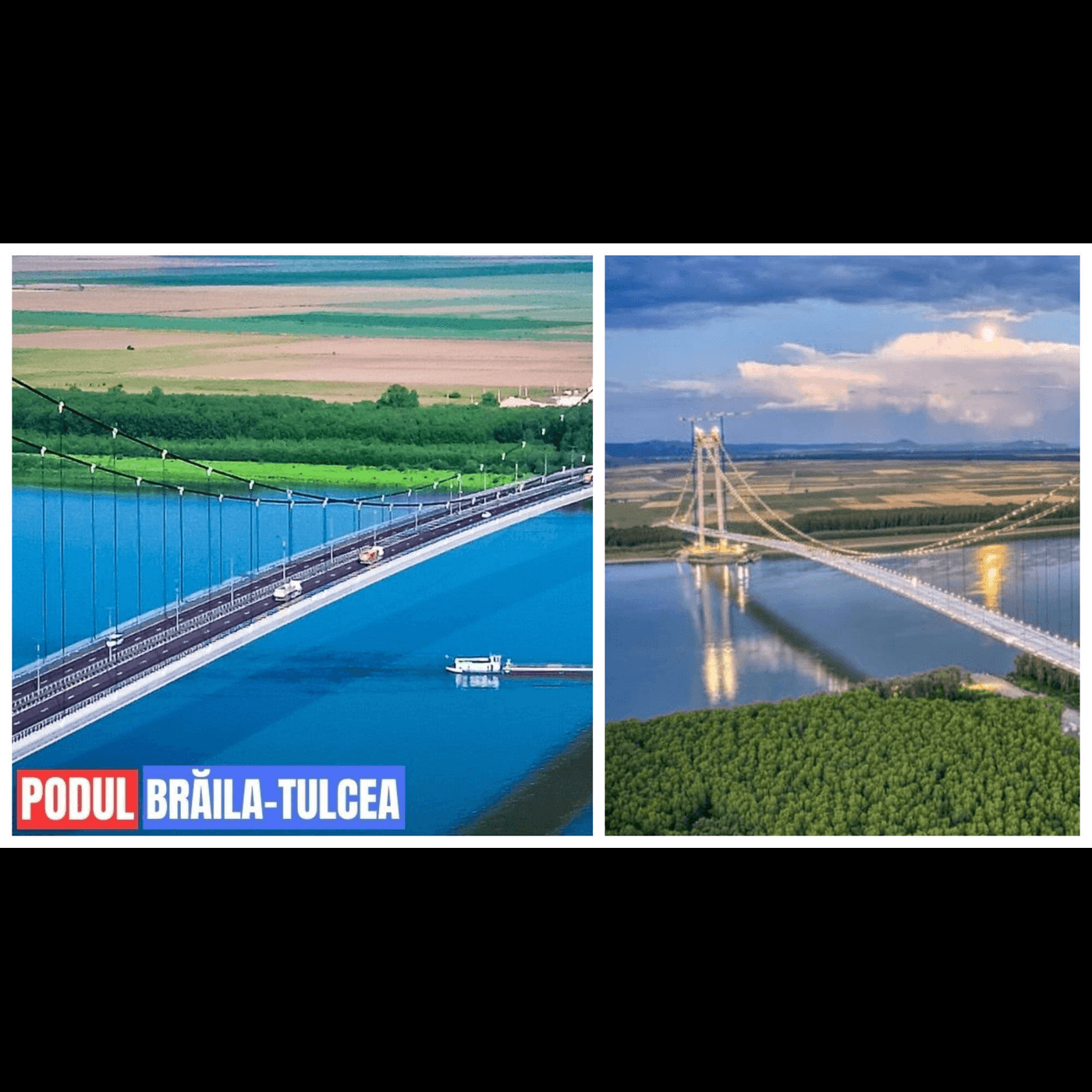 Podul suspendat de la Brăila trece peste Dunăre și leagă Muntenia și Moldova Occidentală cu Dobrogea de Nord, Bărila cu Tulcea și Delta Dunării.