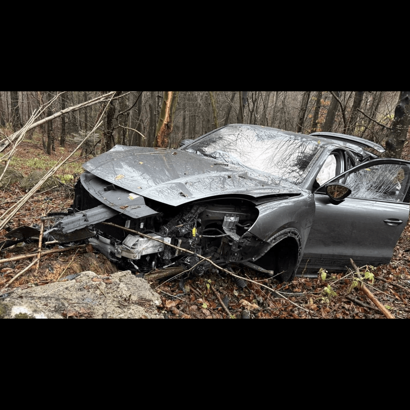 Conform polițiștilor, vehiculul nu a fost lovit de alt participant la trafic. Mașina a părăsit șoseaua în mod necontrolat și a ajuns într-o râpă, unde a intrat în coliziune cu mai mulți arbori. Impactul a distrus aproape complet partea frontală și laterală a Porsche-ului, iar fotografiile de la fața locului, publicate de Libertatea, arătau un autoturism de nerecunoscut. Bolidul, estimat la aproximativ 100.000 de euro, a rămas blocat între trunchiuri, iar unele componente au fost împrăștiate pe o suprafață considerabilă.