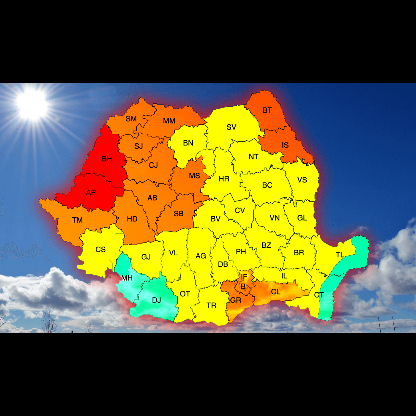 În alte zone ale țării, inclusiv sudul Banatului, Oltenia, Muntenia, Moldova, Dobrogea continentală și estul Transilvaniei, este în vigoare un COD GALBEN, cu temperaturi de până la 36°C și disconfort termic ridicat.