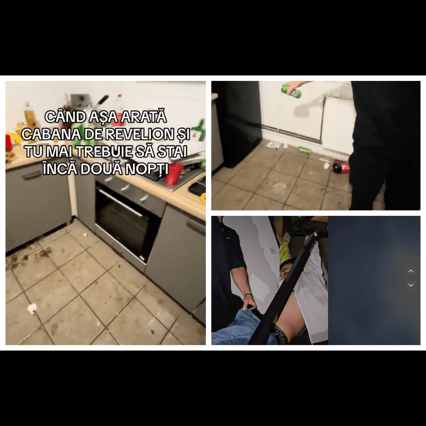 Mai mulți tineri au închiriat o cabană în județul Cluj, pentru a petrece noaptea de Revelion. A doua zi, după ce s-au distrat până dimineața, unul dintre tinerii aflați în locație a filmat cum arăta cabana pe 1 ianuarie. Dezastrul din bucătărie a fost intens comentat pe social media, însă pictura care a umplut paharul a fost momentul în care tânărul care a filmat cabana a turnat o doză de bere pe gresie, care era oricum foarte murdară.