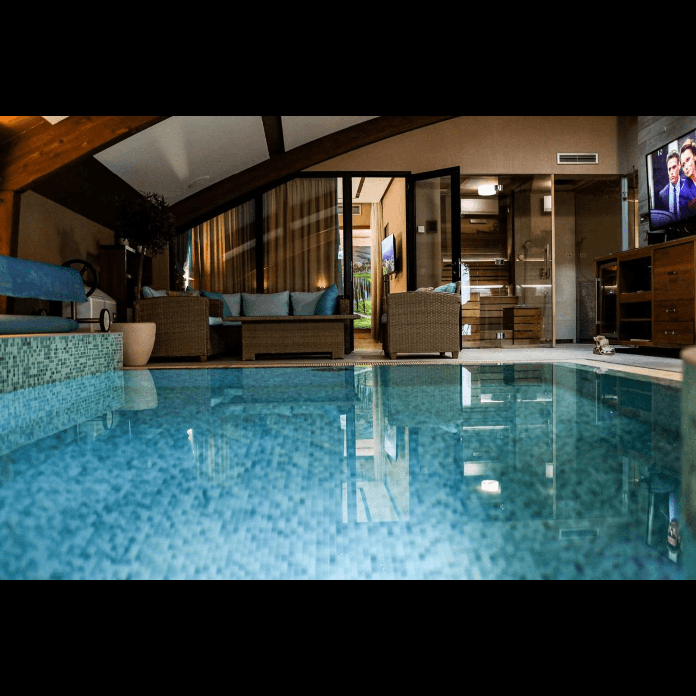 La doar câteva ore de mers cu mașina de granița cu România, acest complex oferă o experiență rară: o cameră de hotel vastă, de 90mp, echipată cu piscină privată și saună, la un preț de 1300 de lei pe noapte. În contextul în care astfel de facilități sunt de obicei asociate cu destinații exotice sau hoteluri ultra-lux, această ofertă pare aproape ireală.
