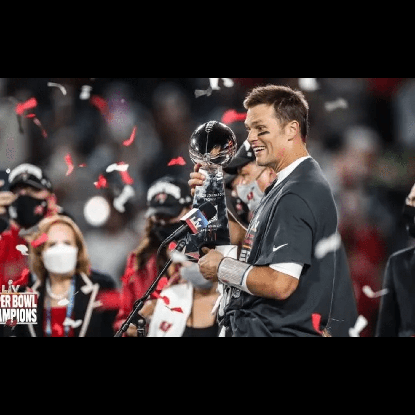 Este pentru a doua oară când echipa Tampa Bay Buccaneers câștigă trofeul Super Bowl. La acest meci, duminică, la Tampa (Florida), au fost prezenți doar 25.000 de spectatori, printe care 7.500 de cadre medicale, care au purtat pe față cartoane cu fețe zâmbitoare, aceștia fiind plasați printre spectatori.
