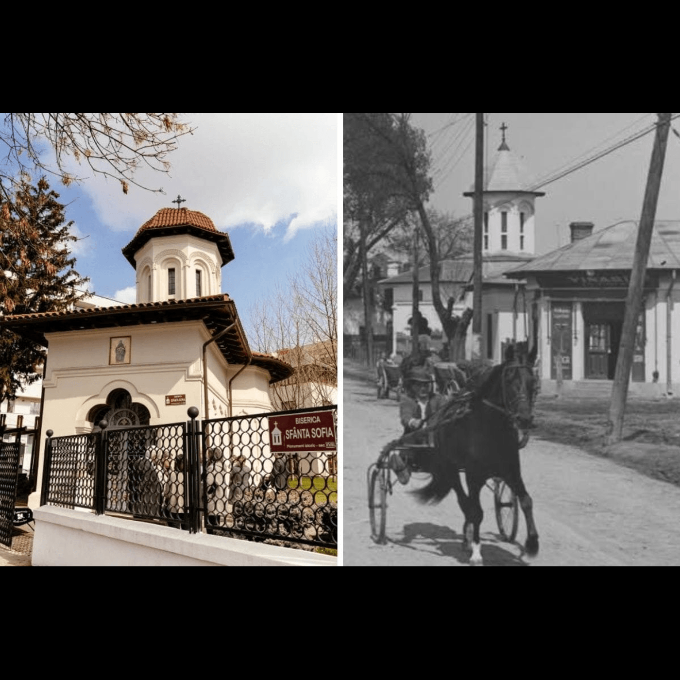 Fotografia istorică în care apare biserica oferă o perspectivă valoroasă asupra modului în care arăta zona în trecut, punând în lumină contrastele dintre vechi și nou.