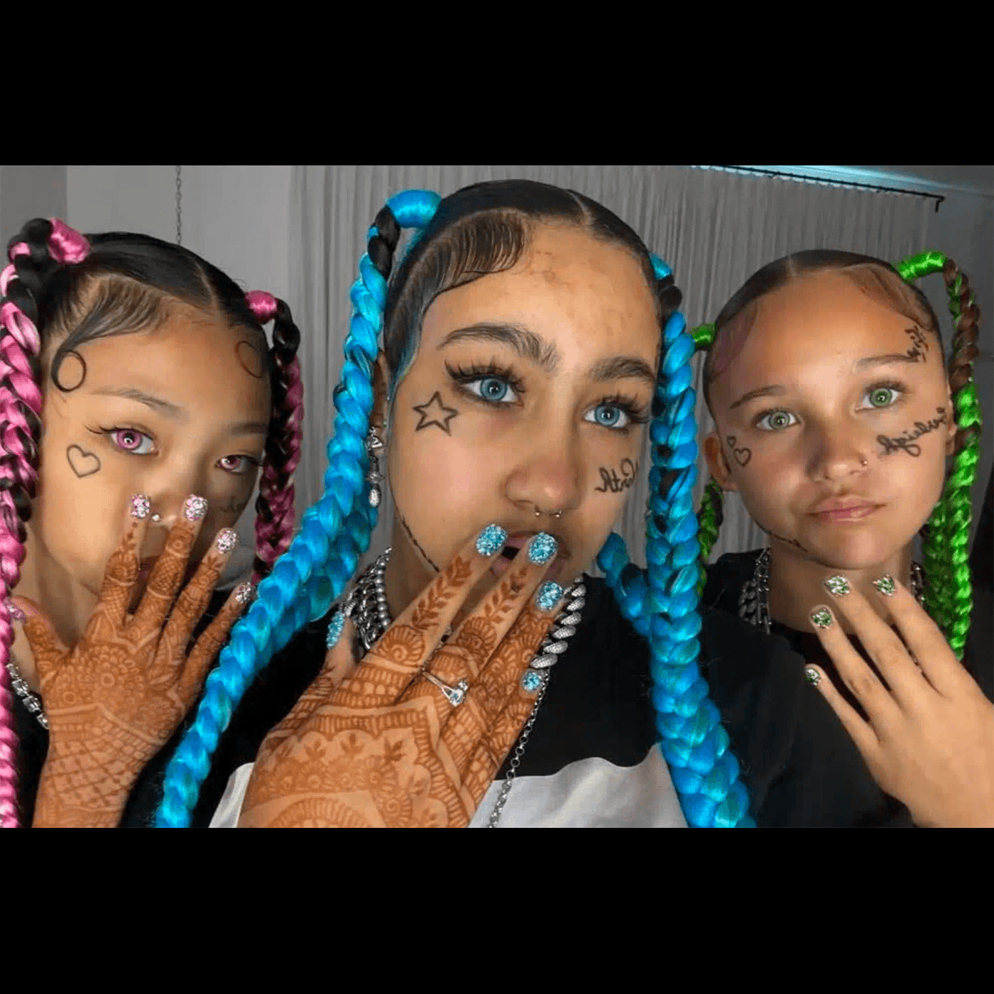 Fata de 12 ani purta tatuaje false pe față, un piercing și grillz, într-un stil inspirat din cultura urbană americană. Reacțiile internauților nu au întârziat să apară, mulți acuzând-o pe Kim că permite fiicei sale să adopte o imagine nepotrivită vârstei.