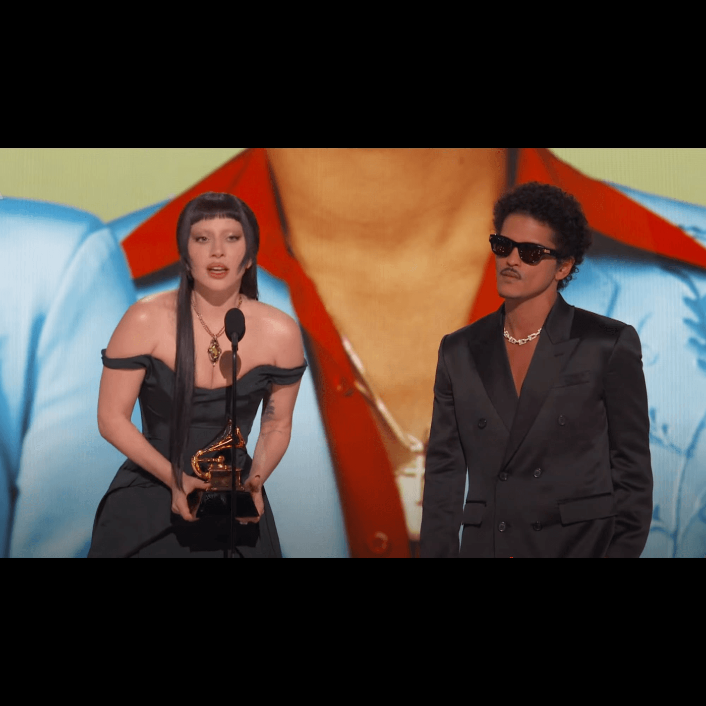 „Vă mulțumim! Gaga, sunt onorat că împart acest cântec cu tine. Sunt onorat că sunt o mică parte din uriașa ta moștenire muzicală. Și cred cu adevărat că Dumnezeu ne-a dat acest cântec pe care să-l cântăm împreună. Așa că îți mulțumesc foarte mult.”, a spus Bruno Mars pe scena evenimentului de găzduire a Premiilor Grammy 2025 din Los Angeles.