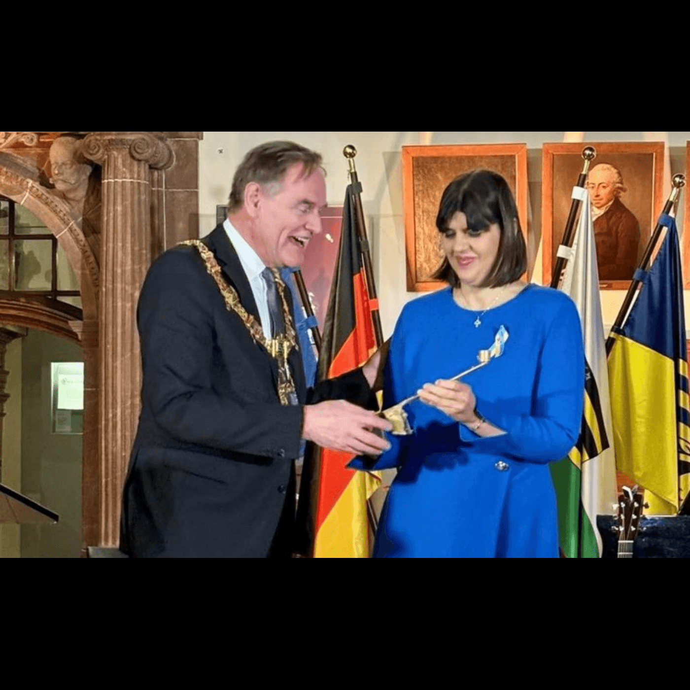 Primarul orașului Leipzig, Burkhard Jung, i-a înmânat astăzi Laurei Codruța Kövesi distincția „Robert Blum pentru Democrație”. Premiul este destinat personalităților care s-au remarcat prin promovarea democrației, a libertăților fundamentale și a statului de drept. Ceremonia a avut loc în cadrul unei reuniuni oficiale a orașului, care a subliniat contribuția Laurei Codruța Kövesi la consolidarea instituțiilor europene și la combaterea corupției.
