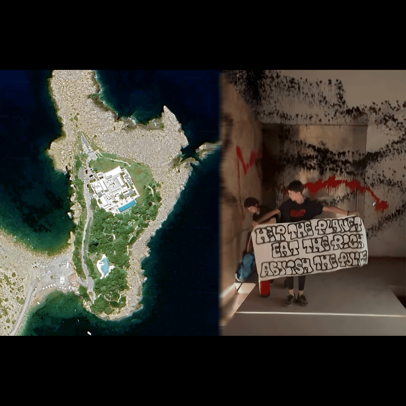 Activiștii au postat un mesaj provocator în apropierea vilei, situată în golfulețul Cala Tarida, pe coasta de vest a insulei Ibiza: „Ajută planeta, mănâncă-i pe bogaţi, scapă de poliţie”. Acest mesaj a fost prezentat într-o înregistrare video distribuită de grupul „Futuro Vegetal”.