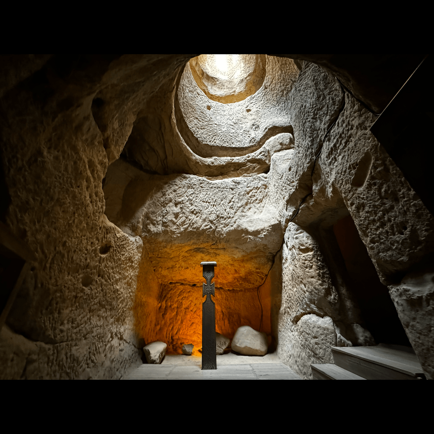 În interiorul peșterii, există mai multe altare, iar pereții sunt acoperiți cu inscripții și simboluri străvechi ce au dat naștere la numeroase teorii și speculații legate de originile locului și de cultul practicat aici.