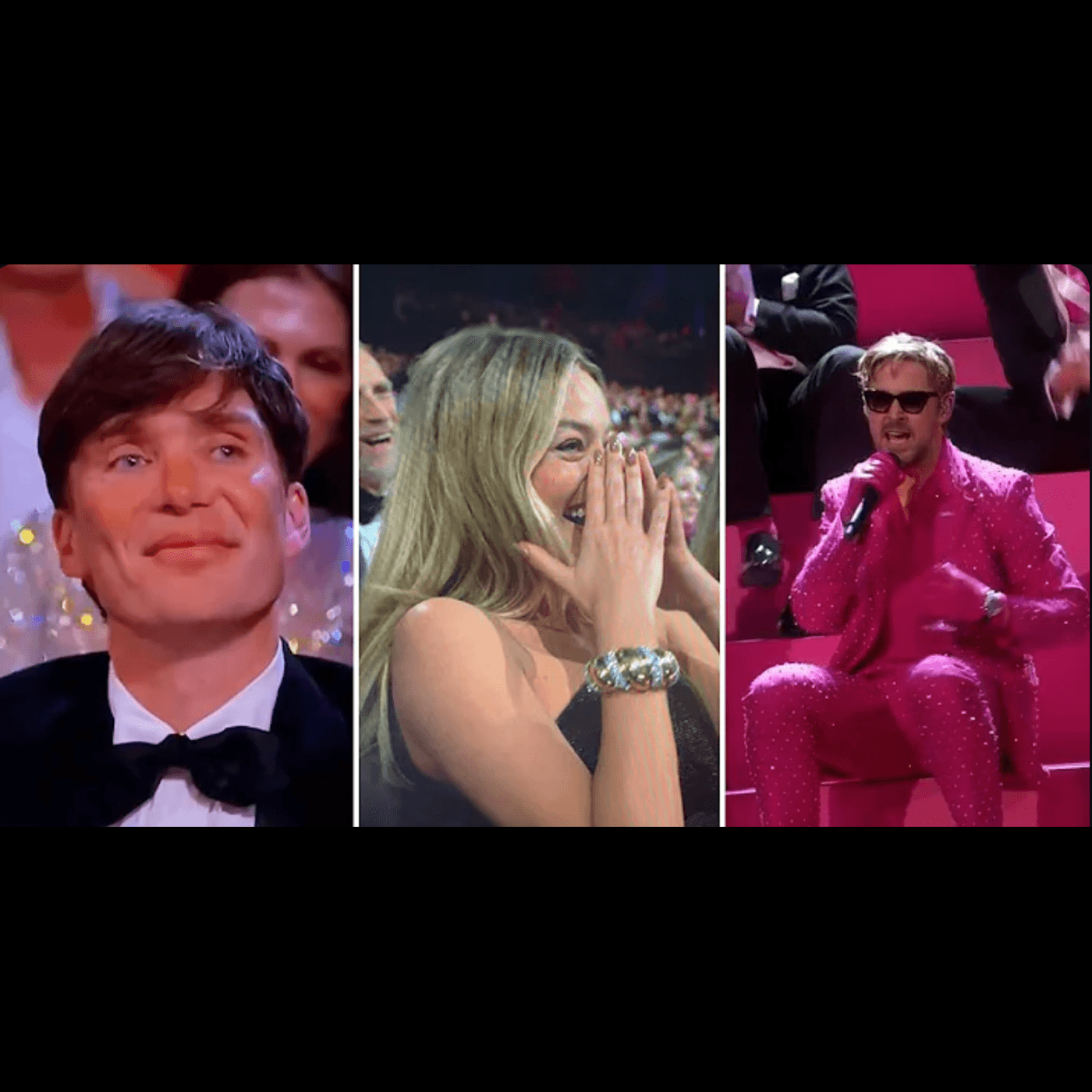 Gosling a purtat un costum roz aprins cu paiete, pe care Kimmel a încercat mai târziu să îl liciteze în fața mulțimii. Deși cântecul „I'm Just Ken” nu a câștigat niciun premiu Oscar, o altă piesă din Barbie a fost desemnată câștigătoare: „What Was I Made For?” de Billie Eilish.