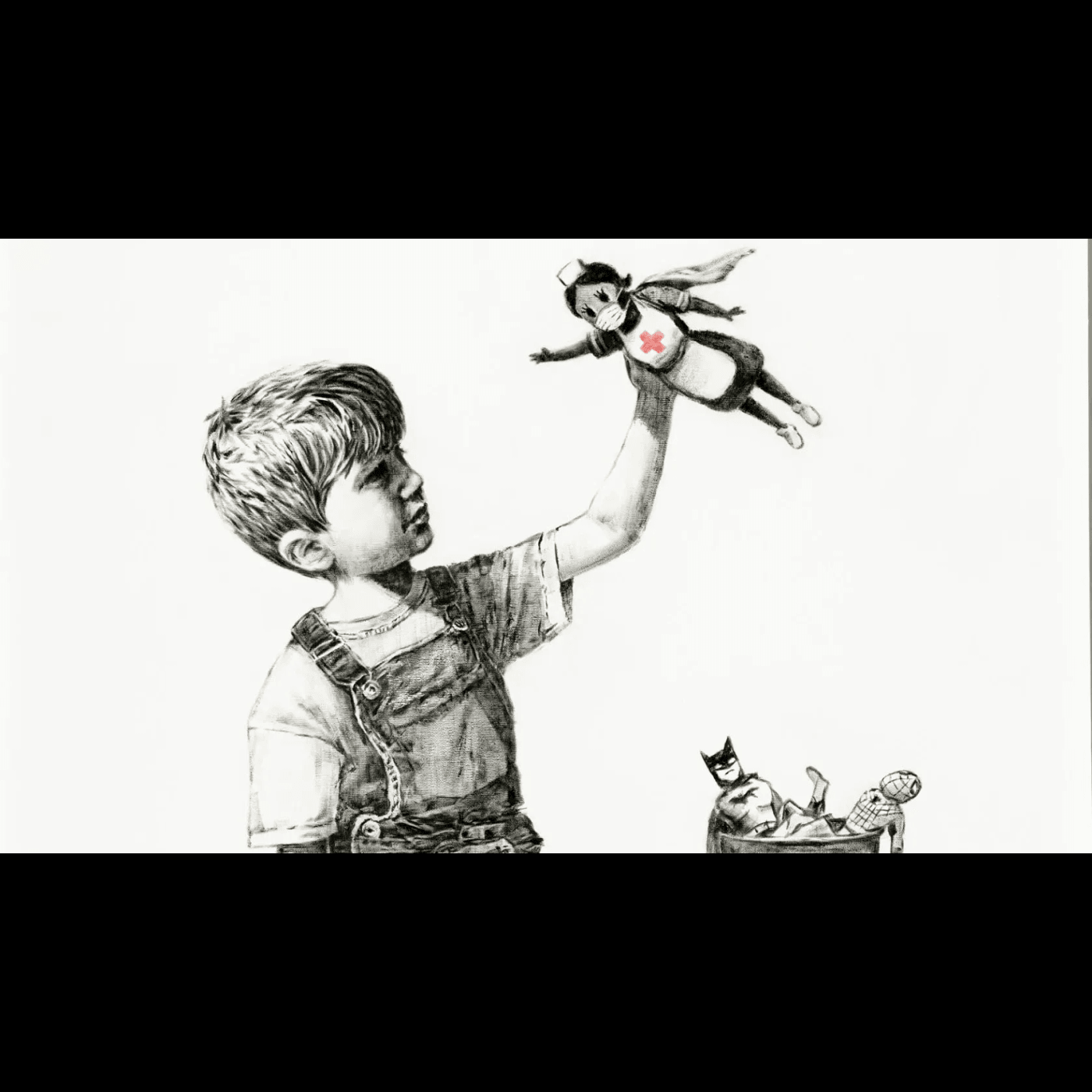 "Vă mulțumesc pentru tot efortul și munca depusă. Sper că pictura aceasta să lumineze / coloreze un pic spitalul, chiar dacă este doar în alb-negru", a scris Bansky.