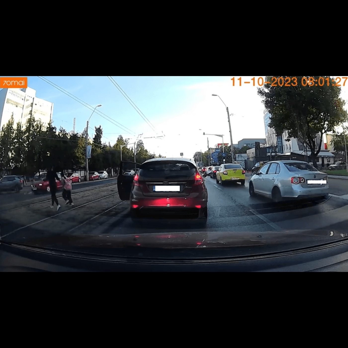 Șocant și inconștient: într-un videoclip devenit viral pe rețelele sociale, o șoferiță oprește brusc și își abandonează mașina pe banda a doua, blocând traficul, doar pentru a traversa liniile de tramvai alături de copilul său. Presupunem că intenția era să îl lase pe micuț la școală.