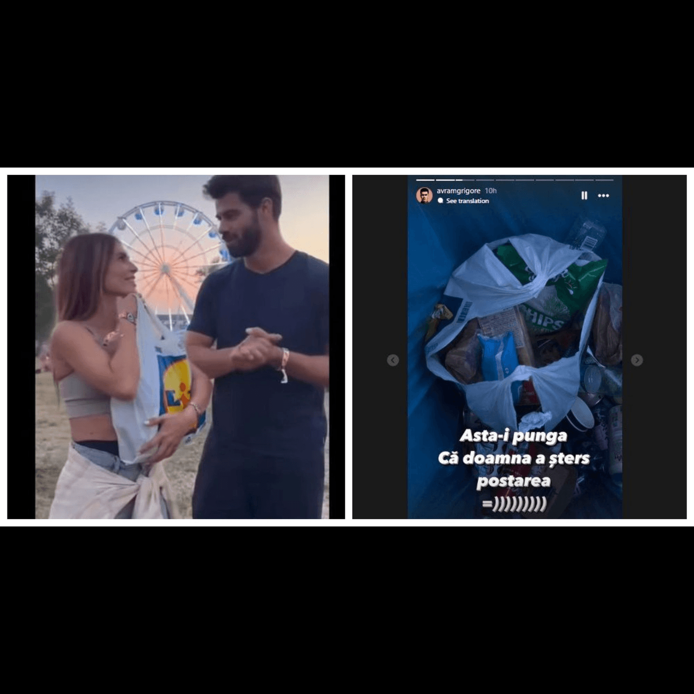 Atât sânziana Negru, cât și Ştefan Floroaica au fost văzuți când au aruncat punga de la LIDL cu alimentele „preferate”, după ce și-au terminat de filmat campania.