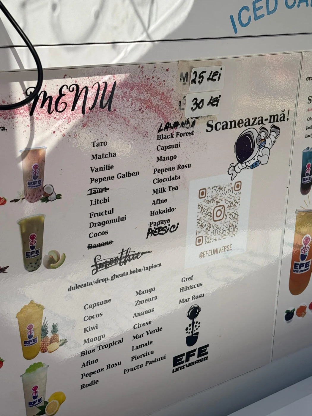 Fanii dulciurilor au fost nevoiți să scoată din buzunar 30–35 de lei pentru o clătită. Cele mai populare combinații, precum Nutella & banane sau Oreo, au fost taxate cu 30 de lei, iar cele cu cremă de fistic și fructe au ajuns la 35 de lei. Iar dacă ai fost însetat după atâtea zaharuri, o sticlă de apă plată de 500ml costa 10–11 lei.