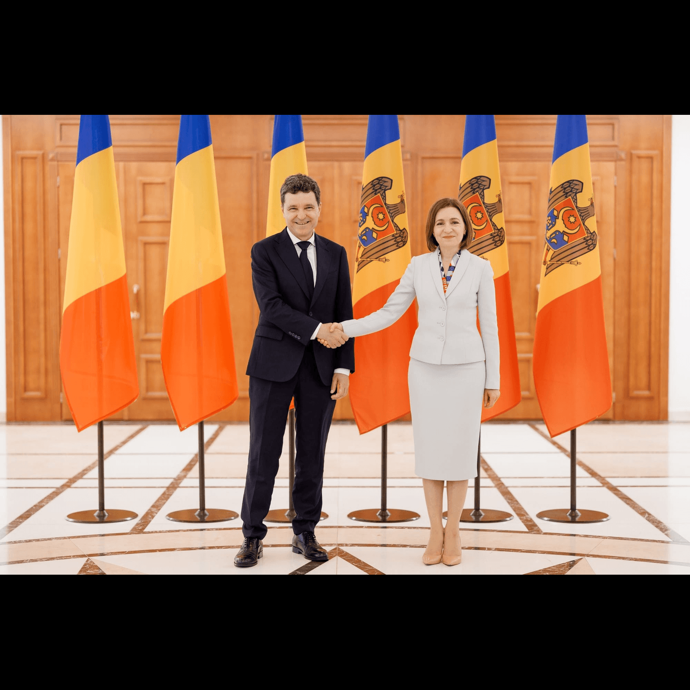 Președintele Republicii Moldova, Maia Sandu, l-a primit la Chișinău pe președintele României, Nicușor Dan. În cadrul unei conferințe de presă, Sandu a exprimat bucuria de a avea în Nicușor Dan un partener ferm, un om care respectă Republica Moldova și le este prieten.