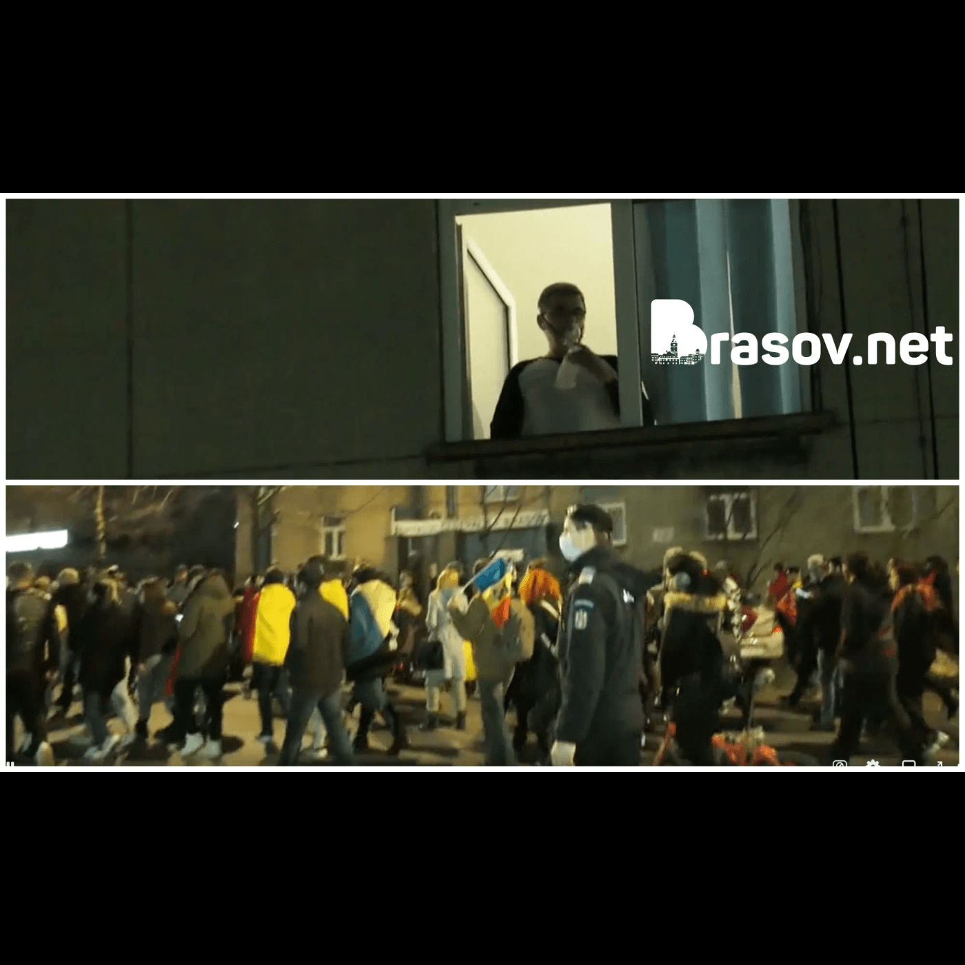 În unele imagini prezentate de Brasov.net se observă cum un bolnav privește pe fereastra spitalului cum o coloană de protestatari mărșăluiește prin fața acestuia.