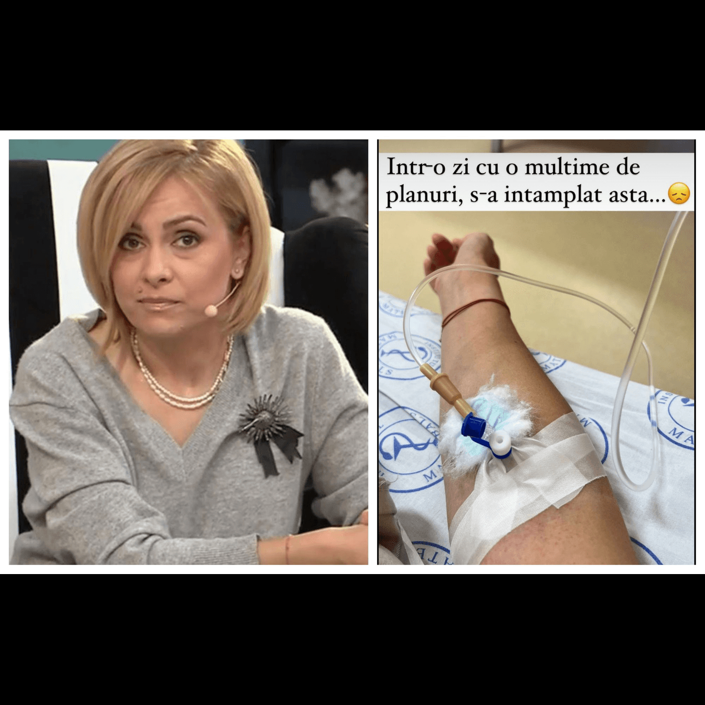 Simona Gherghe, pe patul de spital și cu perfuzia în mână