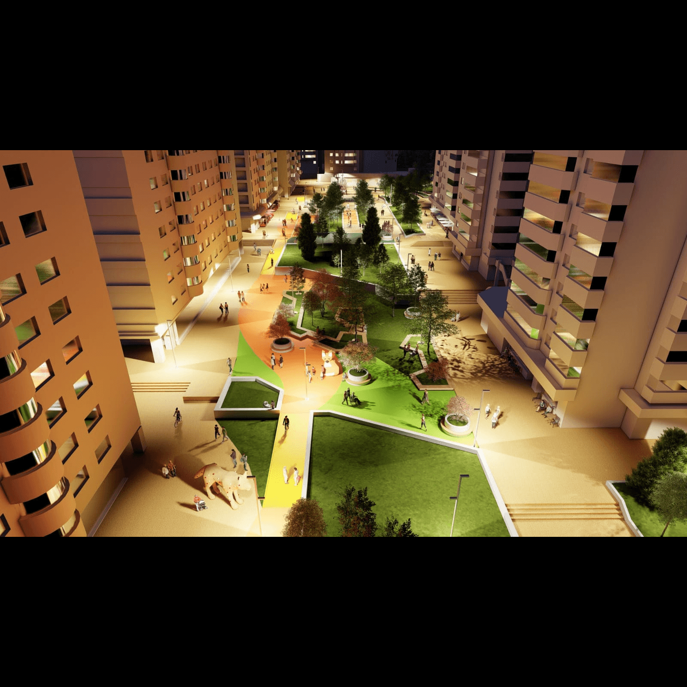Intenția este de a transforma acest loc, odinioară conceput rigid, cu pavaj de granit, într-o adevărată pădure urbană: o zonă verde integrată în viața cotidiană a cartierului Răcădău.