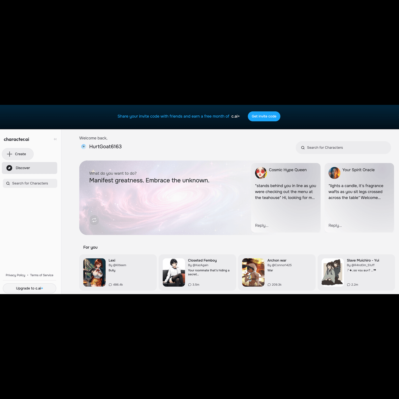 Character.AI este o platformă online care utilizează inteligența artificială pentru a crea chatboți interactivi, care imită personalități sau personaje din diverse universuri fictive, filme sau chiar persoane publice. Utilizatorii pot interacționa cu acești chatboți, având conversații naturale și personalizate. Platforma a fost lansată pentru a permite oamenilor să experimenteze conversații și relații virtuale cu inteligența artificială.