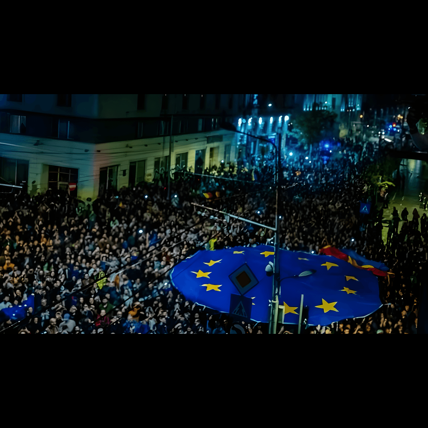 Între timp, steagurile României și ale UE arborate pe sediul de campanie al lui Dan au devenit simboluri virale ale victoriei democrației.