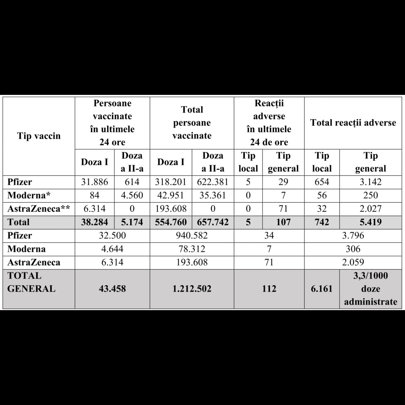- Pfizer: 940.582 persoane vaccinate