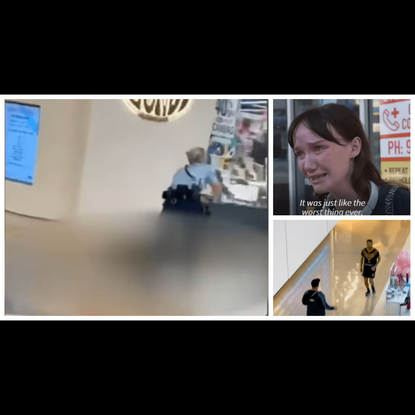 Videoclipurile distribuite pe rețelele de socializare arată cum cumpărătorii fug pe la mai multe ieșiri ale centrului comercial, în timp ce elicopterele poliției pot fi auzite deasupra zonei.